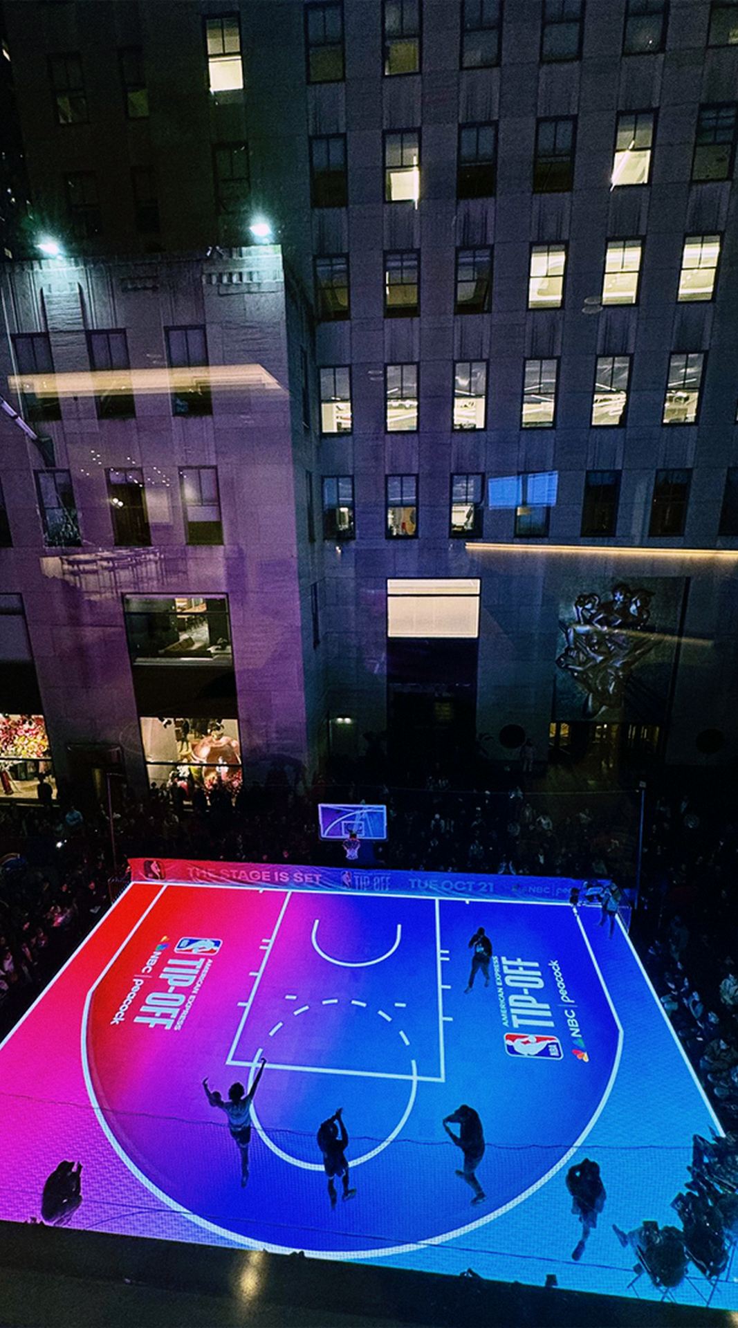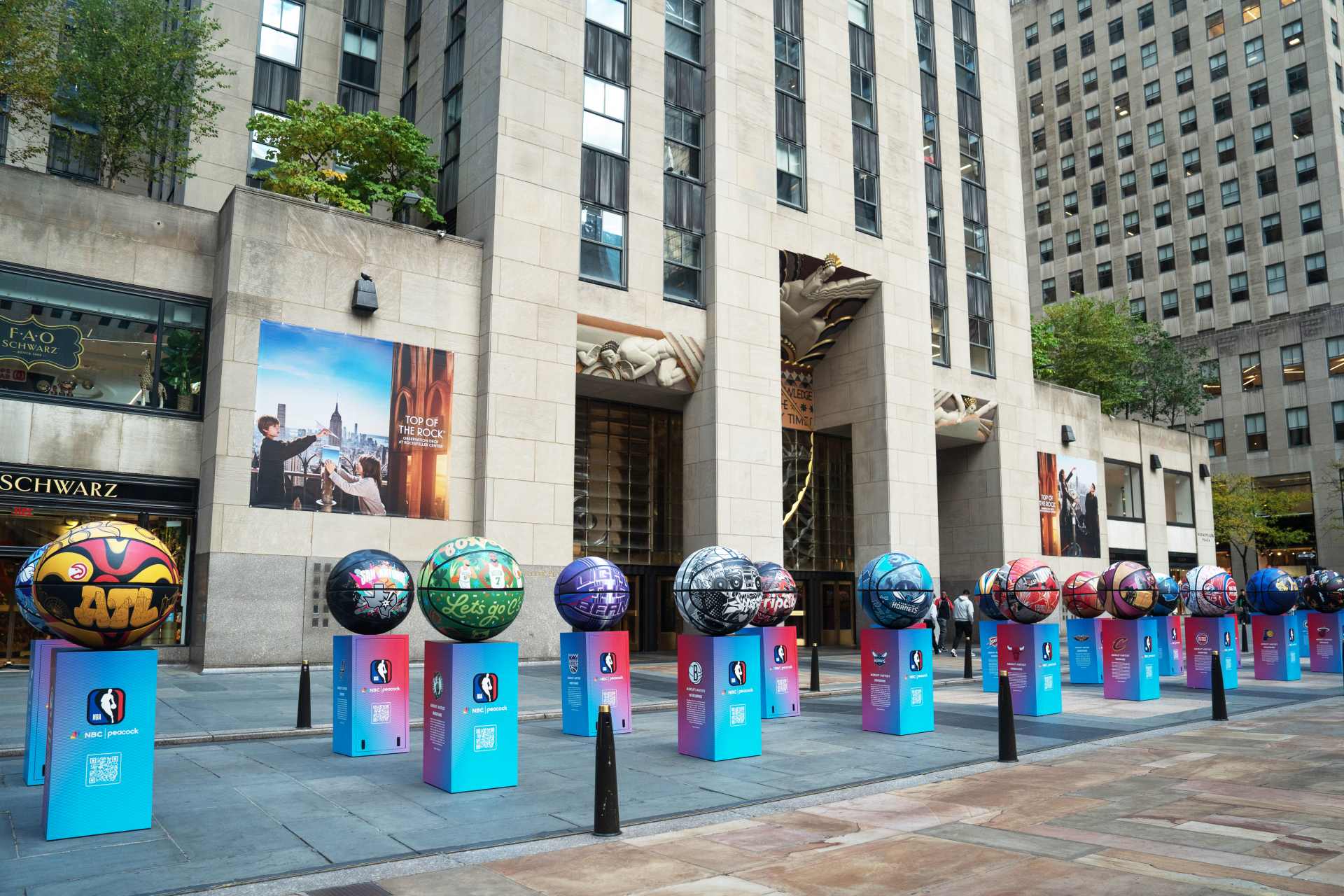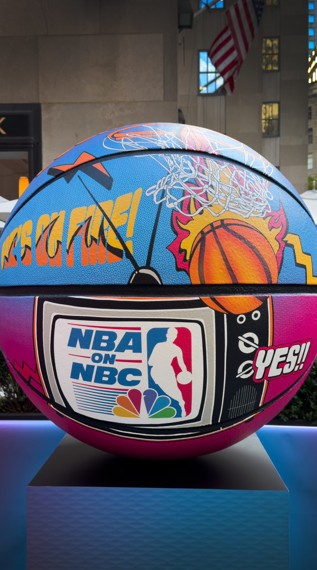 With NBC headquartered at 30 Rockefeller Center, New York City was the natural place to celebrate the return of the NBA to the network. Serendipitously, there are 30 teams in the NBA, and fans of the game lovingly refer to the basketball as “the rock.”